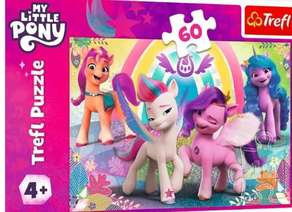 Trefl puzzle W świecie przyjażni My Little Pony. - Gdynia : Trefl, 2023. - 60 puzzli : tektura, kolor ; 21x14 cm.