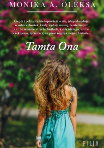 Dominika kocha wiosnę, bo wtedy jej ogród budzi się do życia, cała przyroda rozkwita, a dni mienią się kolorami. Którejś wiosny, jednak, wszystko obumiera. Rozsypują się plany, marzenia i rodzina. Po dwudziestu trzech latach małżeństwa kobieta zostaje z rozdzierającą pustką, poczuciem odrzucenia i z cieniem Tamtej. Codzienność staje się sceną walki, którą Dominika toczy sama z sobą. Dzień po dniu tworzy siebie na nowo ze świadomością, że tylko z popiołów można się tak najprawdziwiej odrodzić. „Tamta ona” to książka o pokaleczonej rodzinie, roztrzaskanym poczuciu własnej wartości i dramacie tych, których dotyka rozstanie. To ciepła i pełna nadziei opowieść o sile, jaką odnajduje w sobie człowiek, kiedy wydaje mu się, że nie ma już nic. Bo właśnie w tych chwilach, kiedy niczego już nie oczekujemy, życie zaczyna pisać najpiękniejsze historie...